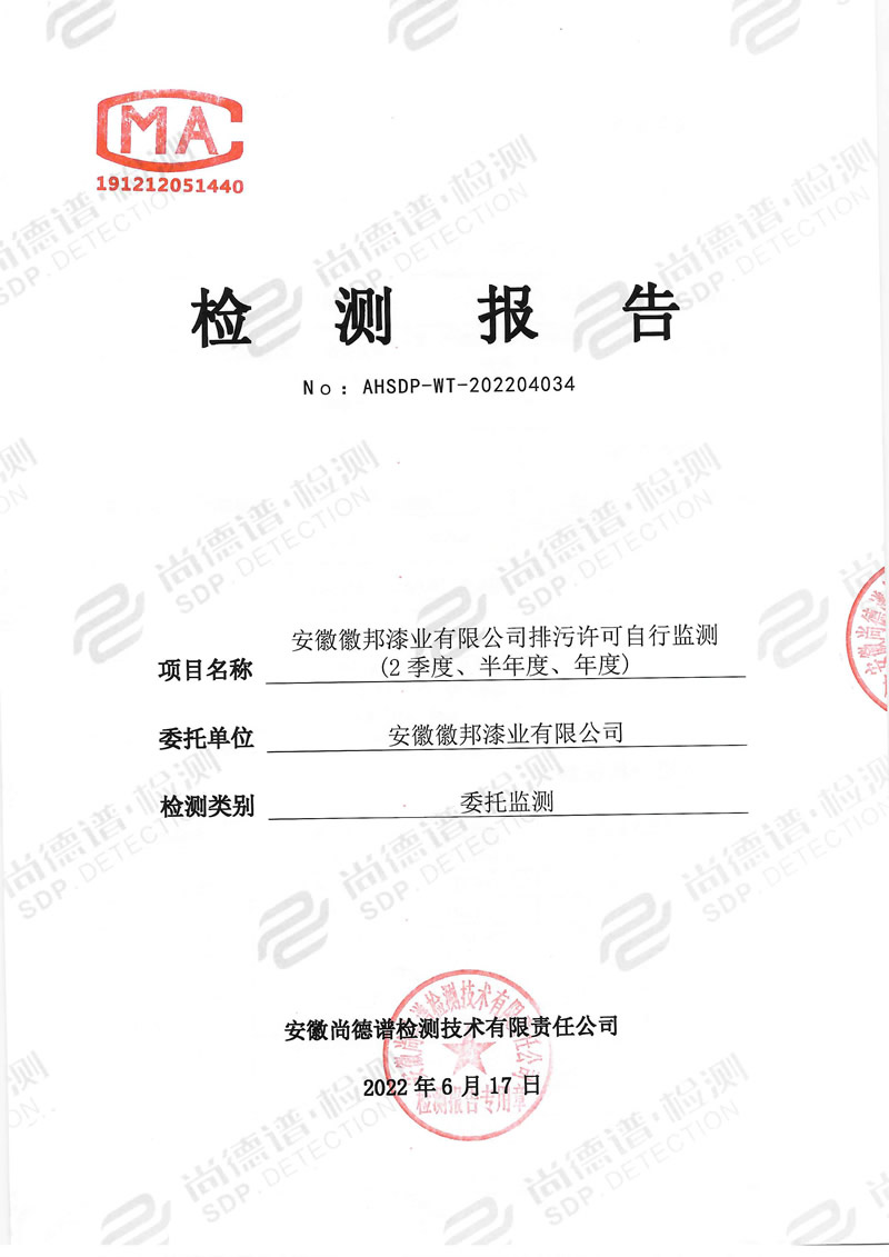 安徽91麻豆精品无码一区二区三区漆业有限公司排污许可自行监测(2季度、半年度、年度)